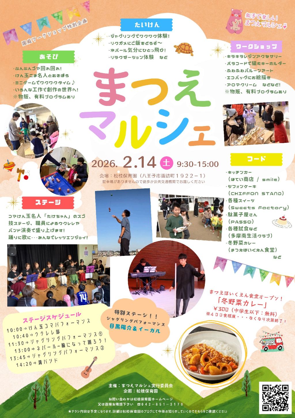- 2025年度 まんてん広場の予定 (次回2月14日 まつえマルシェ)まんてん広場に遊びに来ませんか? 「まんてん広場」は普段のまつえほいくえんの様子がわかるだけでなく、様々な体験… 続きを読む: 2025年度 まんてん広場の予定 (次回2月14日 まつえマルシェ)